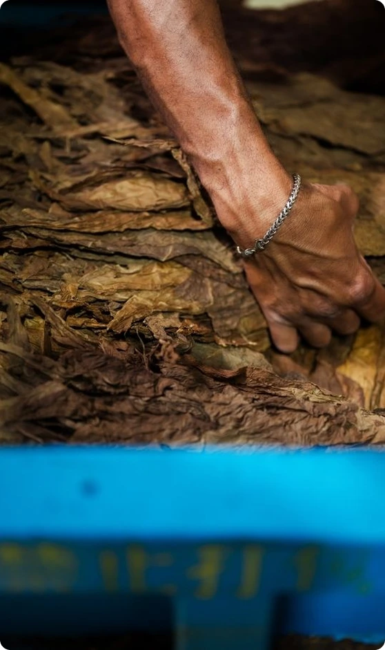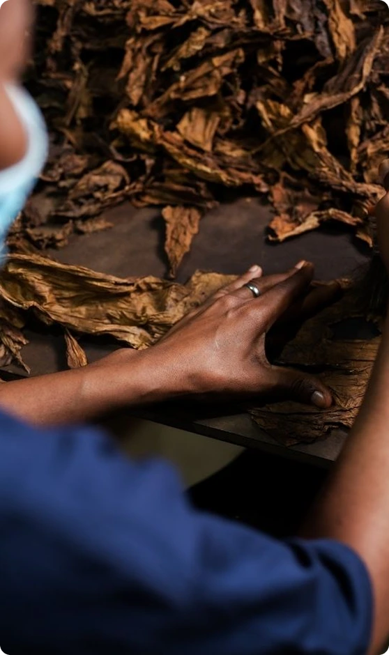 Quitamos el tallo central de las hojas para mejorar su suavidad y sabor, garantizando una experiencia de tabaco más refinada.
